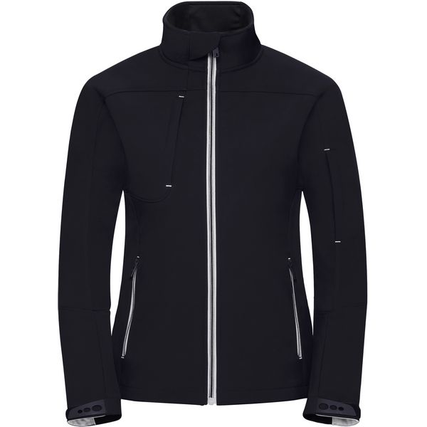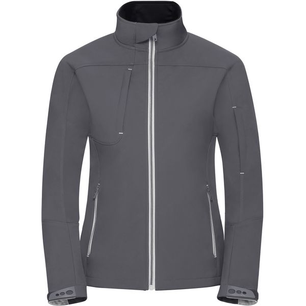 Kroji po mjeri, vodootporan (5000 mm vodenog stupca), prozračan (5000 g/m² u 24 sata), stojeći ovratnik s vjetrobranskim staklom, podesive manšete s manšetama i čičak petljom, podesiva širina ruba, štitnik za bradu, bočni klizni