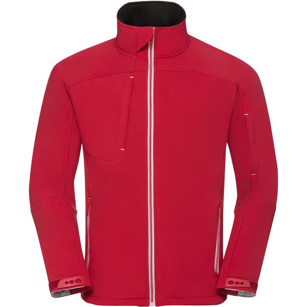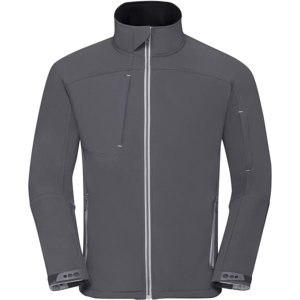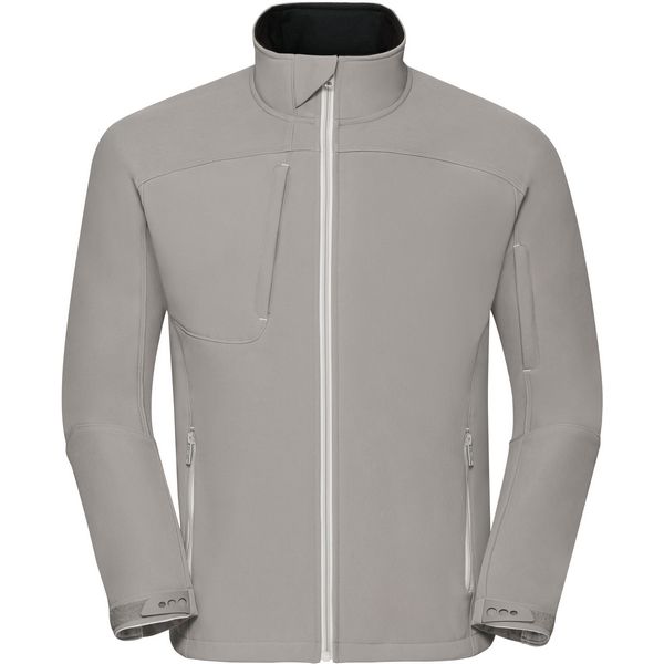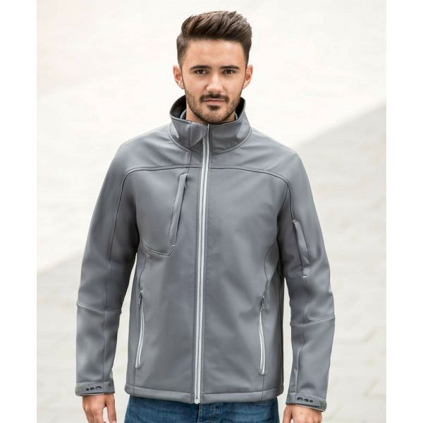 Vodootporan (5.000 mm vodenog stupca), prozračan (5.000 g/m² u 24 h), stojeći ovratnik s vjetrobranom, podesive manšete s manšetama i čičak petljom, podesiva širina poruba, štitnik za bradu, bočni džepovi koji se uvlače s Materijal:
