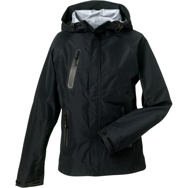 Sportsko tehnički 10000 za žene, ergonomski kroj, vodootporan (10 000 mm vodenog stupca), prozračan (8 000 g/m² u 24 sata), podesiva kapuljača, patentni zatvarači ispod pazuha, laserski rezani i zavareni džep s vodootpornim patentnim zatvaračima, otporan na vjetar