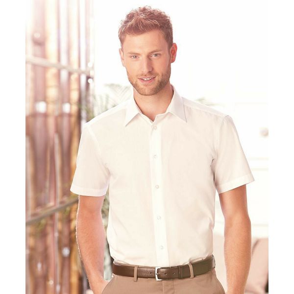 Usko krojen model, učvršćeni poluprošireni ovratnik, dvostruko presavijeni manšete, zaobljeni rub, zamjenski gumbi, bez džepa na prsima, jednostavno održavanje, lako održavanje, perivo na 50°, pogodno za sušenje u sušiliciMaterijal: