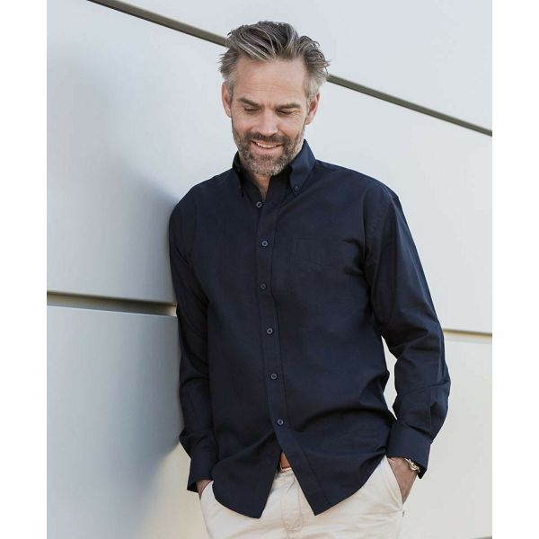 Usko krojen model, ovratnik s kopčanjem, zaobljene manšete, podesive s 2 gumba, zaobljeni rub, lijevi džep na prsima, strelice na leđima, jednostavno održavanje, pogodno za sušenje u sušiliciMaterijal: