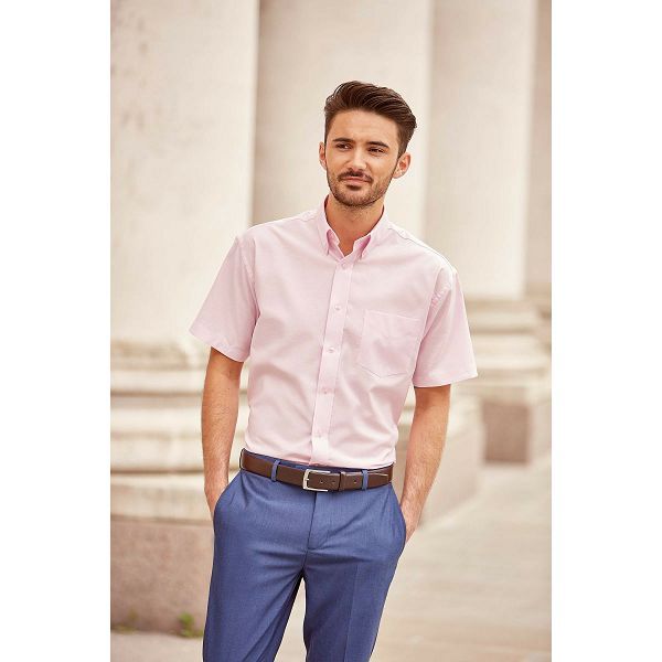 Klasičan kroj, ovratnik na kopčanje, zaobljeni porub, zamjenski gumbi, suženi džep u obliku slova V na lijevom prsnom košu, stražnji jaram s 2 bočna nabora, jednostavno održavanje, perivo na 40°, pogodno za sušenje u sušiliciMaterijal: