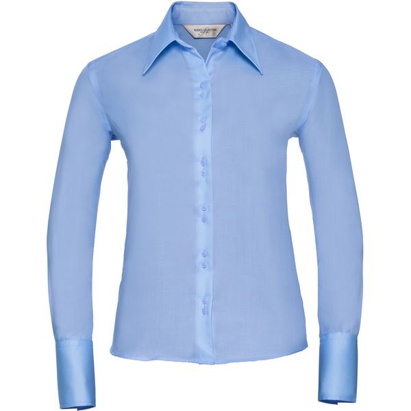 Krojeno po mjeri, velikodušno rezan ovratnik s dugim vrhovima, široki rukavi s manžetama i gumbom, dvostruko kopčanje na nitne, zamjenski gumbi, inovativna tkanina koja bluzu održava svježom i u obliku cijeli dan, ne glača se, može se prati na 40°, pogodna za sušenje u sušiliciMaterijal: