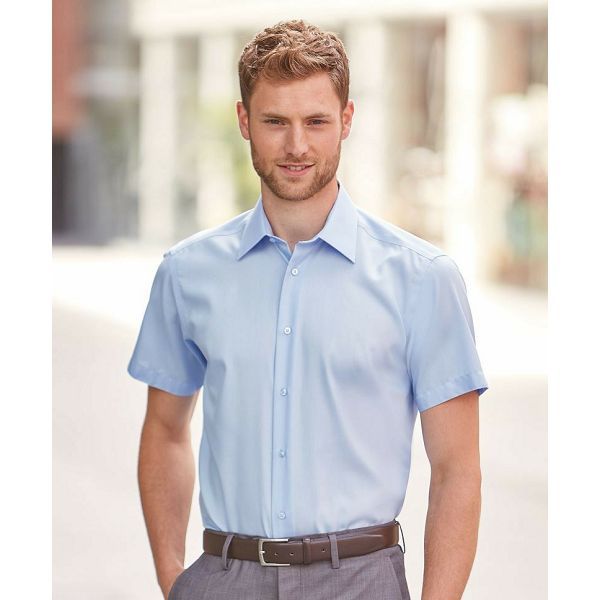Usko krojen model, poluprošireni učvršćeni ovratnik, dvostruko preklopljene manžete, zaobljeni porub, zamjenski gumbi, bez džepa na prsima, inovativna tkanina koja košulju održava svježom i u formi cijeli dan, ne glača se, može se prati na 40°, pogodna za sušenje u sušiliciMaterijal: