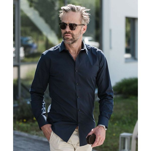 Duži kroj, kroj po mjeri, poluučvršćeni ovratnik s izrezom, kratak oblik ovratnika, uski pojas s gumbima, manšete s četvrtastim rubom, nosivo s manžetama, strelice na leđima, izdržljiva tkanina, izvrsno zadržavanje oblika za dugotrajno pristajanje, regulacija vlage, jednostavno održavanjeMaterijal: