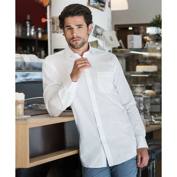 Usko krojen model, prozračan i regulira vlagu, učvršćeni New Kent ovratnik, ukošeni manšete, podesivi s 2 gumba, zaobljeni porub, lijevi džep na prsima, stražnji jaram s 2 bočna nabora, jednostavno održavanje, pogodno za sušenje u sušiliciMaterijal: