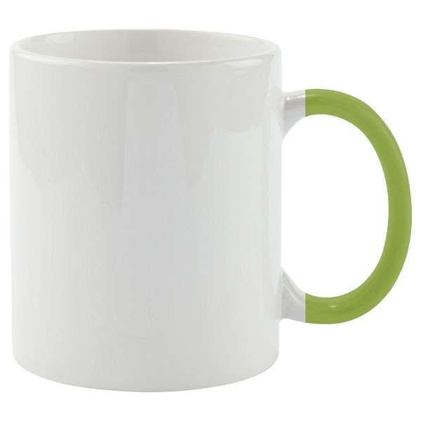 White ceramic mug with coloured handle, 350 ml. In gift box.Veličina proizvoda: