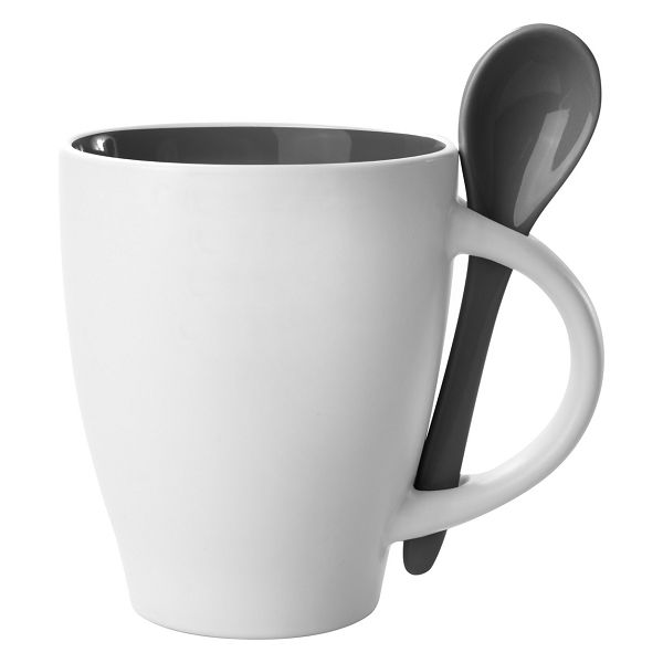 White ceramic mug with coloured inside and matching colour ceramic spoon, 300 ml.Veličina proizvoda: