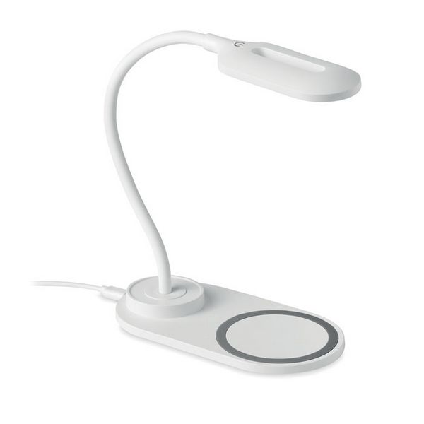 ABS stolna svjetiljka s 10 LED lampica i bežičnim punjačem od 10 W. Zaslon osjetljiv na dodir. Izlaz: DC 9V/1,1A (10 W) za brzo punjenje.
