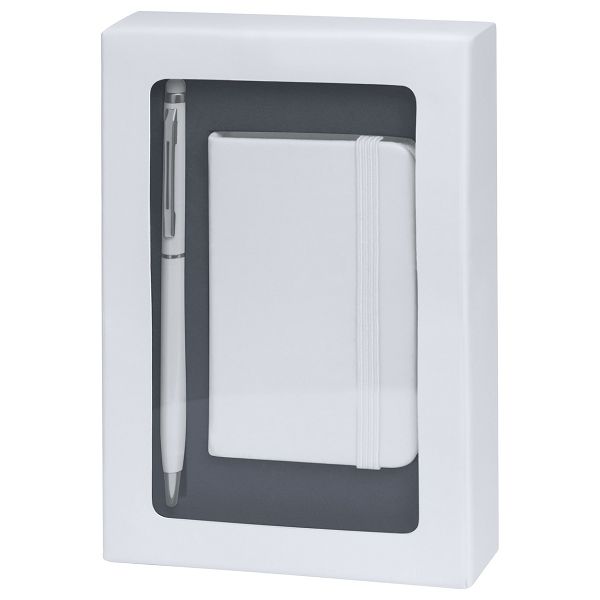 Note set with paper covered mini notebook with 80 sheets and aluminium ballpoint and touch screen pen. In matching colour gift box.Veličina proizvoda: