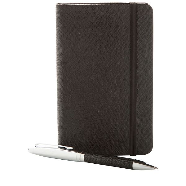 Elegant business set with PU leather covered notebook with 100 blank sheets and metal ballpoint pen. Delivered in black gift box. Antonio Miro brand porduct.Veličina proizvoda: