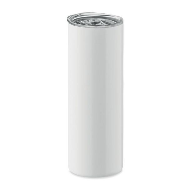 Dvoslojna čaša od nehrđajućeg čelika i PS poklopac s usnikom sa posebnim premazom za sublimacijski tisak. Kapacitet: 590 ml.