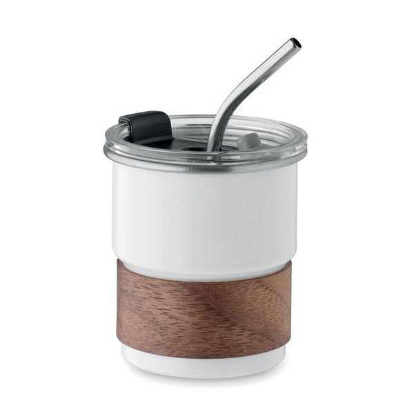 Čaša s jednom stijenkom od recikliranog nehrđajućeg čelika (90% recikliranog nehrđajućeg čelika i 10% nehrđajućeg čelika) s odvojivom ručkom od akacijevog drva, slamkom od nehrđajućeg čelika. Nastavak za slamku i izravno otvaranje bez propuštanja. Kapacitet: 260 ml. Budući da je ovo šalica s jednom stijenkom, prijenos topline i dalje može doći do toga.