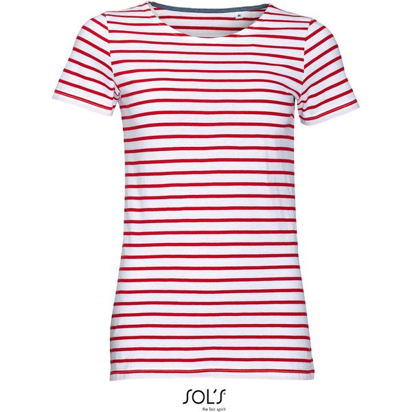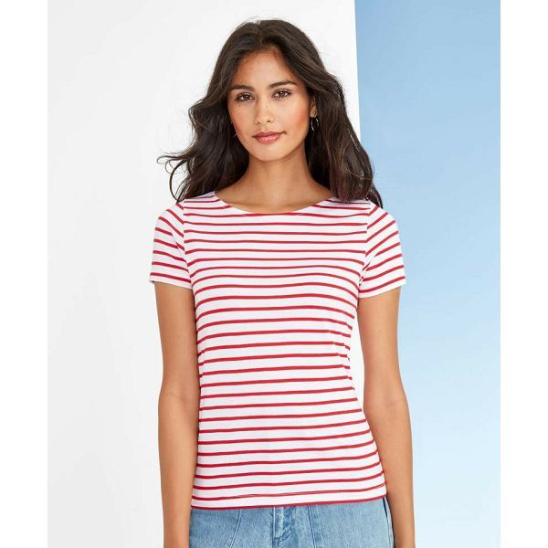 Usko krojen model, ženstveni okrugli izrez, unutarnja traka oko vrata od šambra, prugasti dizajn, mogućnost skidanja etikete, etiketa neutralne veličineMaterijal:
