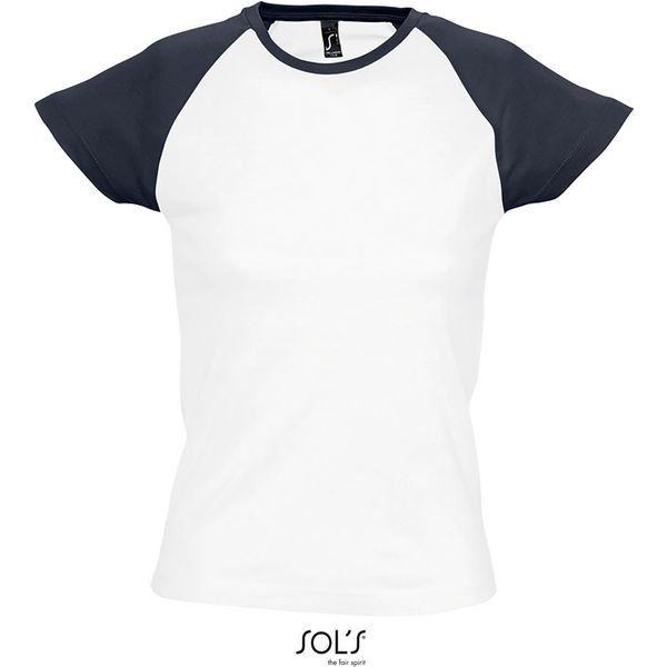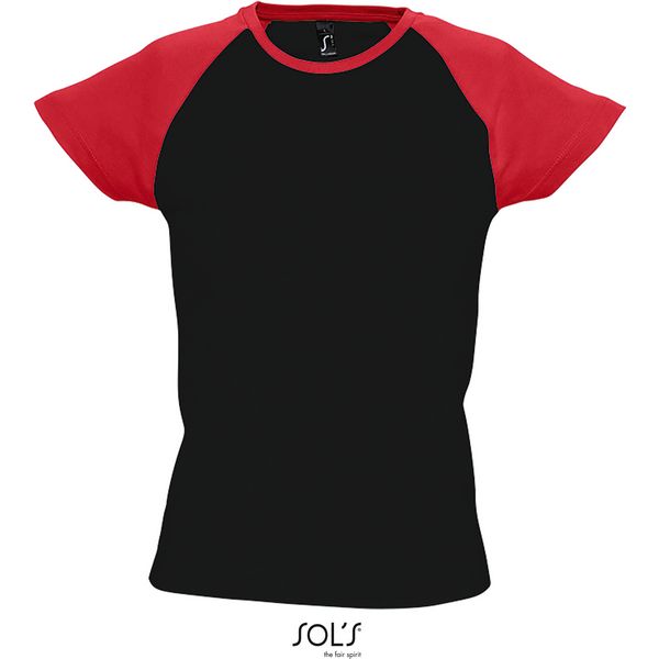 Usko krojen model, uski rubni dekolte s elastinom, raglan rukavi u kontrastnoj bojiMaterijal:
