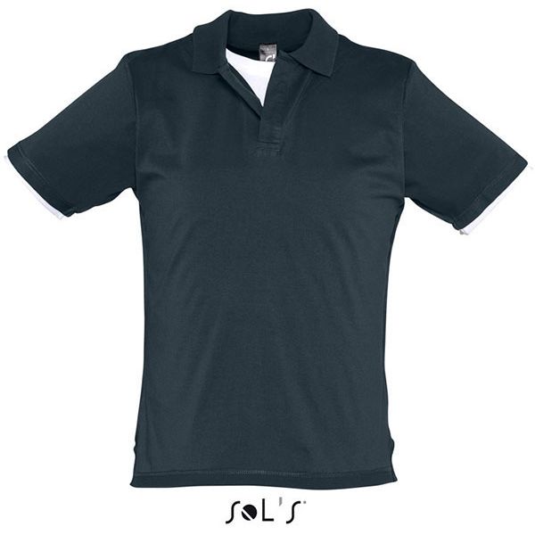 Efekt ovratnika majice na vrhu polo majice, dio ovratnika ton u tonu, dvostruke manžete u kontrastnoj boji, vidljivi šavovi, bočni šavovi, bočni prorezi od žerseja, duži izrez na leđimaMaterijal: