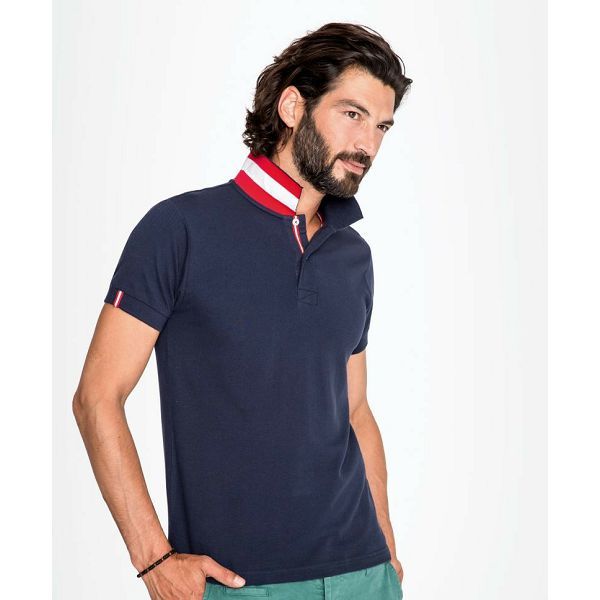 Usko krojen model, 1x1 rebrasti ovratnik i manžete, 2 gumba s trakom od tkanine u kontrastnoj boji, ojačani bočni prorezi s kontrastnom trakom, dvobojne pruge ispod ovratnikaMaterijal: