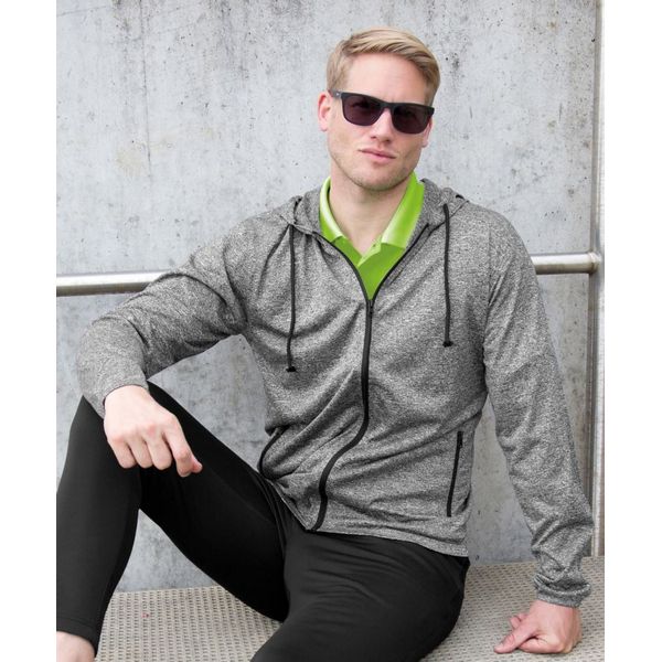 Prozračna, kapuljača s uzicom, vezanje na kapuljaču i rubu, otvoreni manžeti i manžete na rukavima, bočni džepovi s patentnim zatvaračem, brzo sušenjeMaterijal: