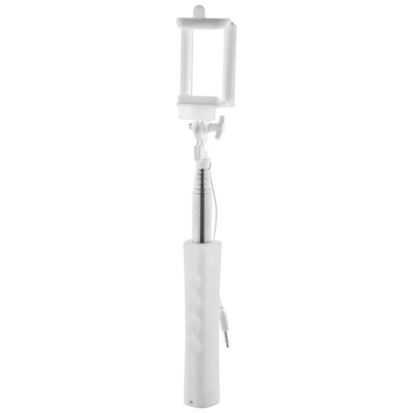 Stainless steel selfie stick with plastic grip and camera shutter button (3,5 mm Jack connection). With universal mobile holder.Veličina proizvoda: