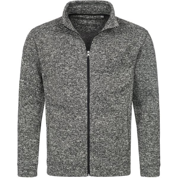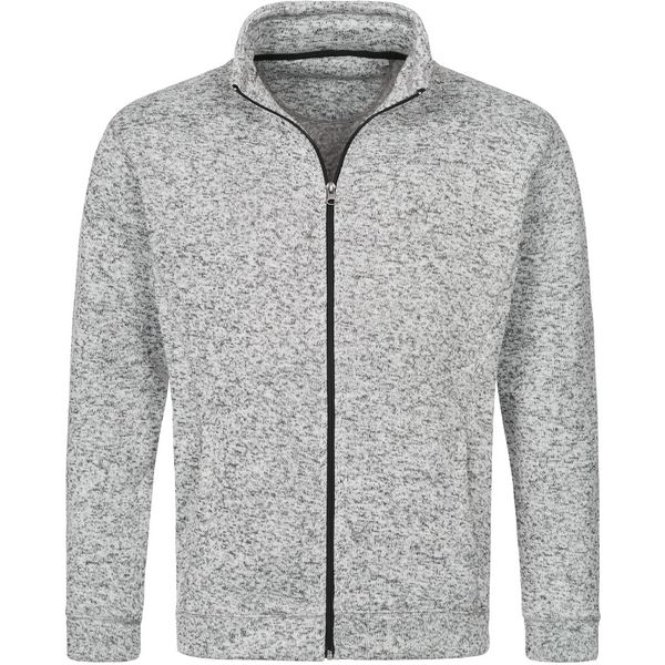 Samostojeći ovratnik, manšete i porub od samotkane tkanine, 2 bočna džepa na uvlačenje, ravni šavovi sprijeda, pletena površina u melange izgledu, hrapava iznutra, oznaka neutralne veličine, perivo na 40°