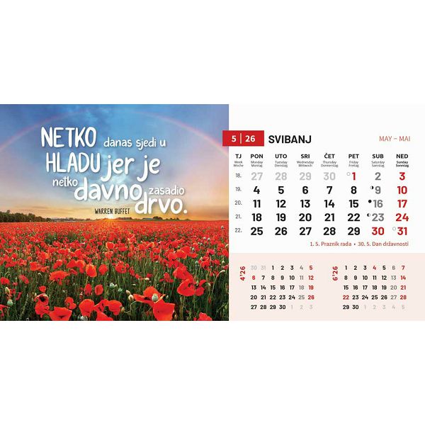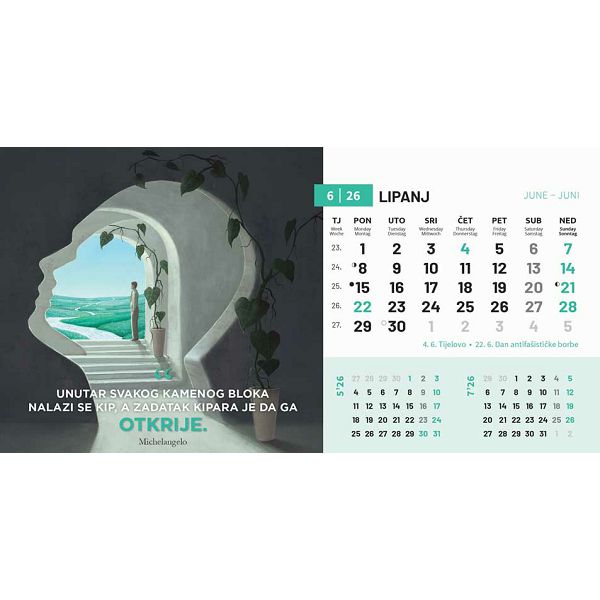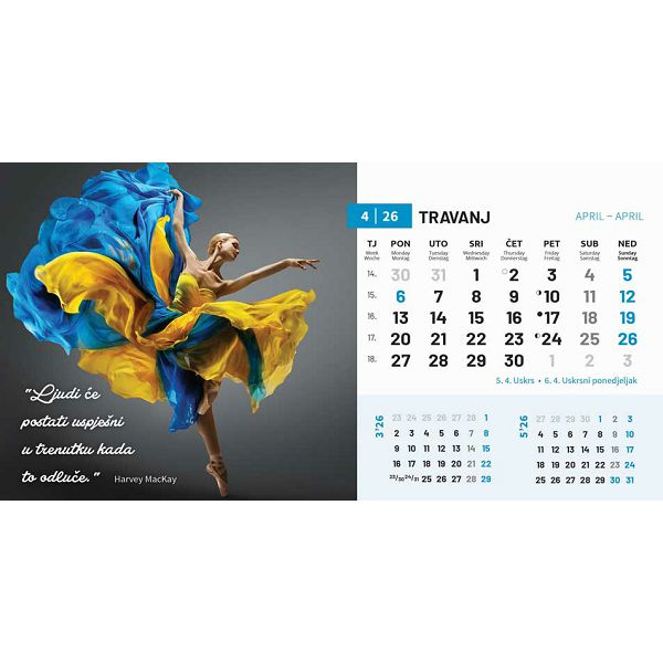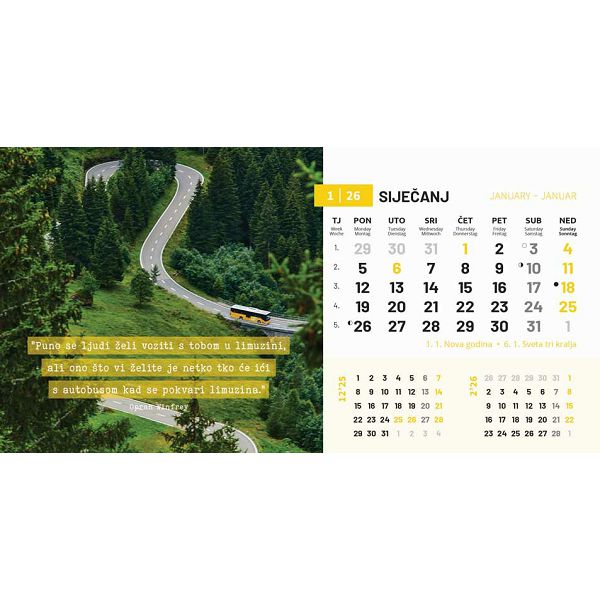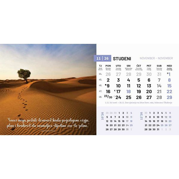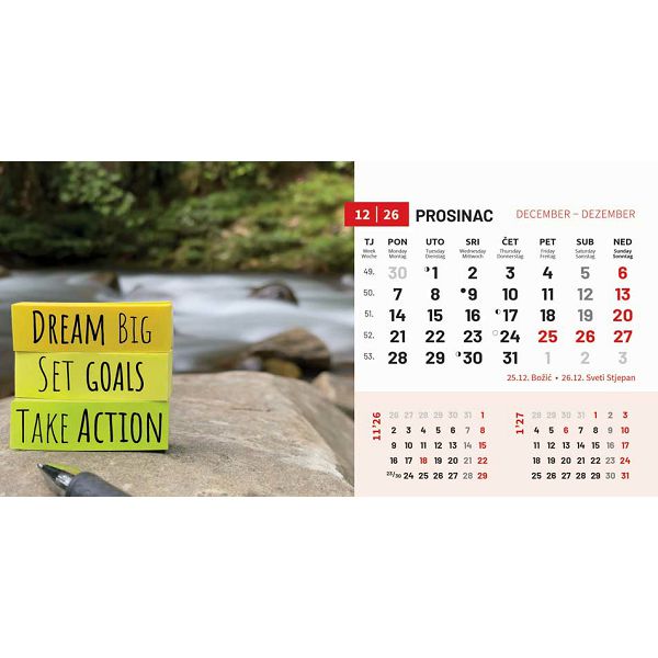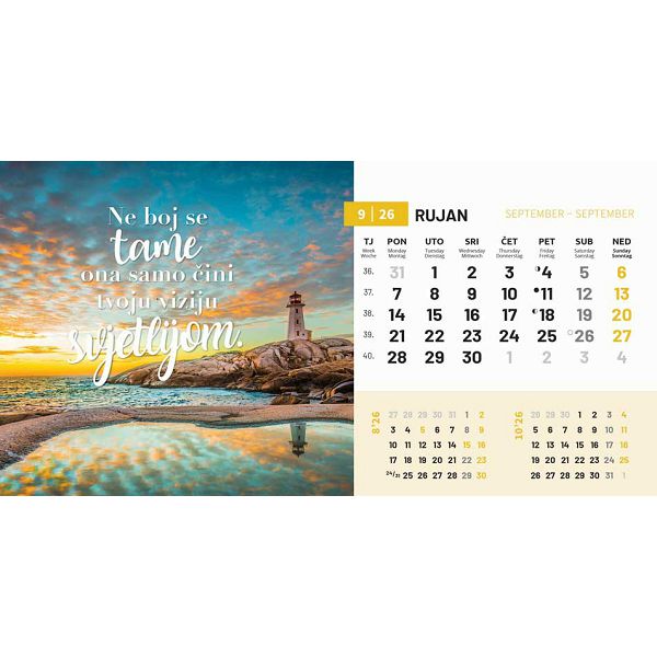 Stolni kalendar MOTIVACIJSKI za 2026. – 13 listova, 20,5x14,5 cm