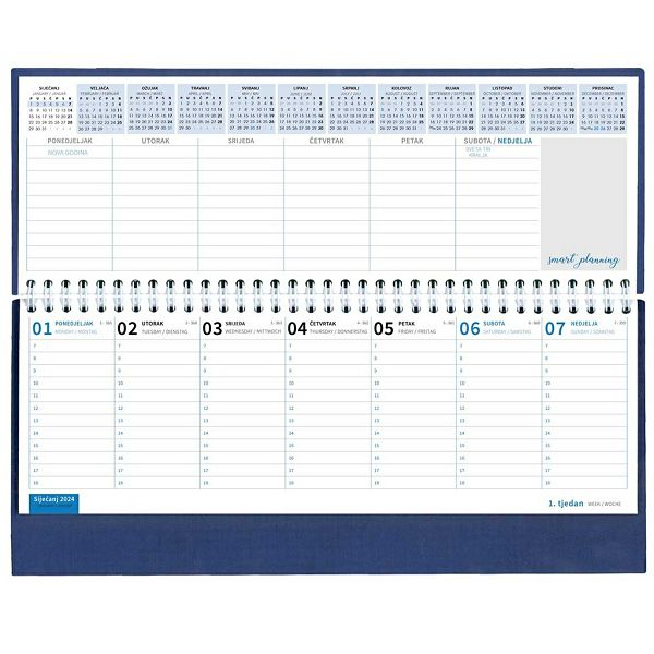 Opis proizvoda:128 strana \ndimenzija: ~ 30 x 14,5 cm \njezici: HR, GB, DE\nvrsta papira: 80 g/m2 listovi\ntisak: dvije boje (siva, plava) \nuvez: spiralni\npakiranje: 50 kom\npreporucena vrsta tiska: sitotisak, suhi žig, foliotisak, termotisak
