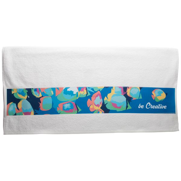 100% cotton, 400 g/m² terry towel with polyester border for sublimation printing. Price includes sublimation printing. MOQ: 50 pcs.Veličina proizvoda:
