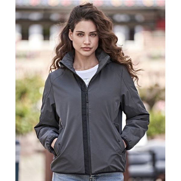 Dvoslojna funkcionalna tkanina, vodoodbojna (8000 mm vodenog stupca), prozračna (3000 g/m² u 24 sata), odvojiva kapuljača s uzicom, elastični rub i manžete, štitnik za bradu, 2 bočna džepa s patentnim zatvaračem i preklopom s crnim metalnim gumbima Materijal: