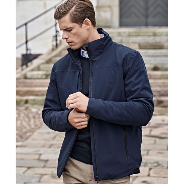Dvoslojna funkcionalna tkanina, vodootporna (8 000 mm vodenog stupca), prozračna (3 000 g/m² u 24 sata), podignuti ovratnik, elastični porub i traka na otvoru za ruke, podstavljeni džepovi s patentnim zatvaračem, unutarnji džep, zapečaćeni šavovi, pristup ukrasima na Materijal: