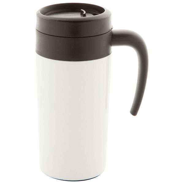 Stainless steel, single wall thermo mug with plastic drinking lid and handle, 350 ml.Veličina proizvoda: