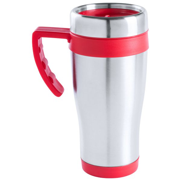 Stainless steel, double wall thermo mug with coloured plastic parts and handle, in gift box. 450 ml.Veličina proizvoda: