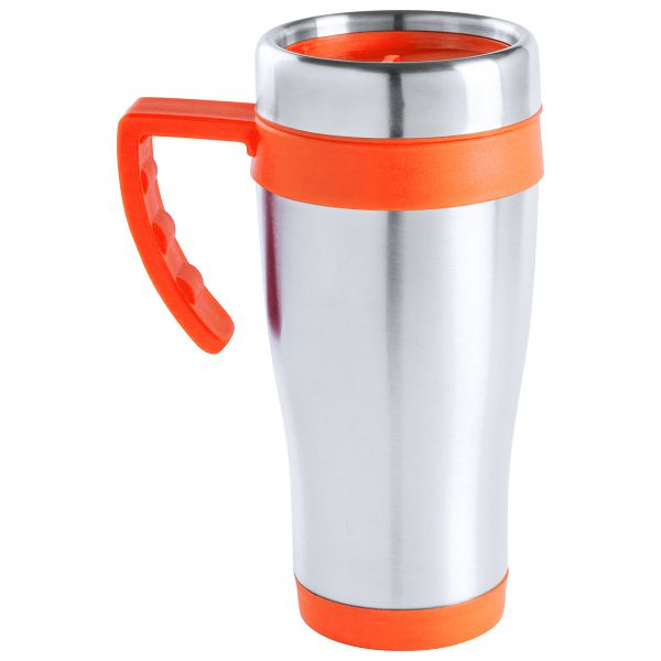 Stainless steel, double wall thermo mug with coloured plastic parts and handle, in gift box. 450 ml.Veličina proizvoda:
