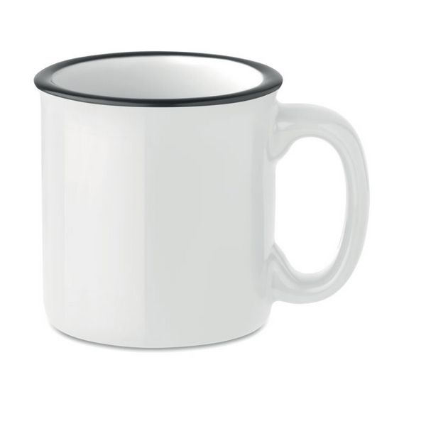 Keramička šalica u vintage stilu, kapaciteta 240 ml. Pojedinačno pakiranje u bijeloj kartonskoj kutiji. Keramički transfer može se prati u perilici posuđa.