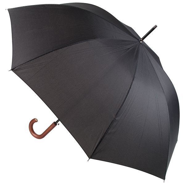 Automatic, windproof, black and grey striped umbrella with 8 panels, wooden handle, metal shaft and fibreglass ribs. 190T pongee. In branded carry case. André Philippe brand product.Veličina proizvoda:
