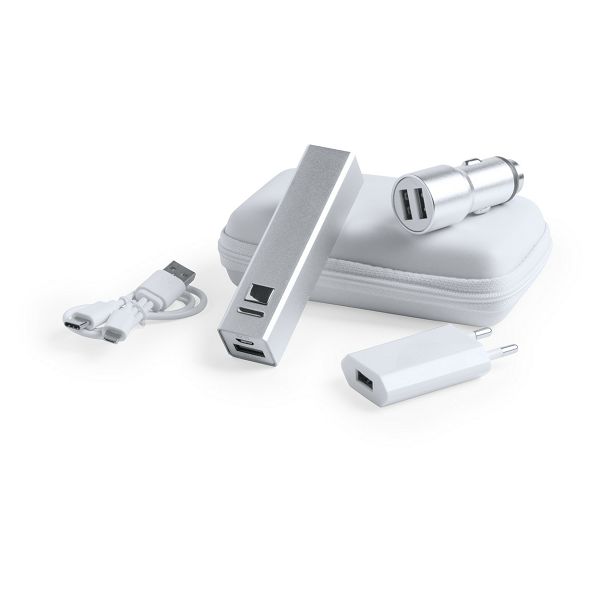 USB charger and power bank set Tilmix, srebro
