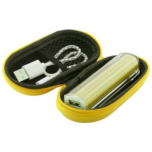 Plastic USB power bank with 2200 mAh battery. In zipped case with micro USB charger cable.Veličina proizvoda: