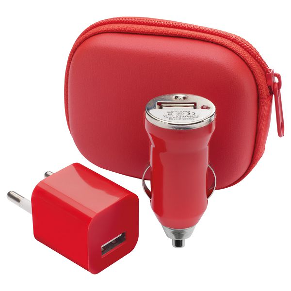 USB charger set in zipped case, including: car and AC USB chargers. Max output: 1000 mA.Veličina proizvoda: