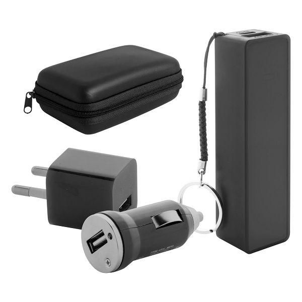 USB charger and power bank set in zipped case. With car and AC USB chargers (max output: 1000 mAh), and USB power bank with 2200 mAh battery. Including micro USB charger cable.Veličina proizvoda: