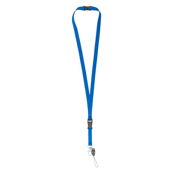 Lanyard with safety fastener, detachable metal carabiner and mobile string. Material: polyester.Veličina proizvoda: