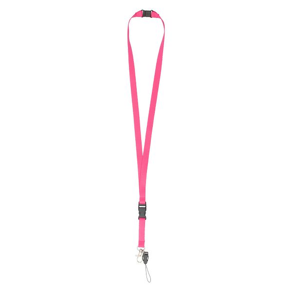 Lanyard with safety fastener, detachable metal carabiner and mobile string. Material: polyester.Veličina proizvoda: