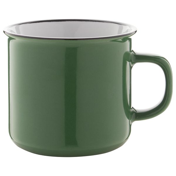 Vintage ceramic mug with black rim, white inside and coloured outside, 320 ml. Delivered in gift box.Veličina proizvoda: