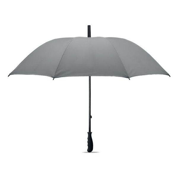 Kišobran otporan na vjetar od 23 inča s ručnim otvaranjem od visokoreflektirajućeg poliestera s drškom i rebrima od stakloplastike. Crni plastični vrh i vrh. Crna gumena drška. Ručno zatvaranje.