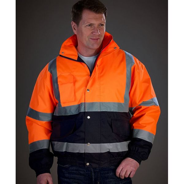 Vodootporna, podesiva kapuljača, elastične manžete na rukavima i obrubima, kombinirano zatvaranje s patentnim zatvaračem i kopčama, vjetrobran punom dužinom, 2 bočna džepa s preklopom, unutarnji džep, džep na grudima s krpom, zapečaćeni šavovi, certificirano prema EN ISO 20471 klasa 3 Materijal: