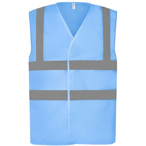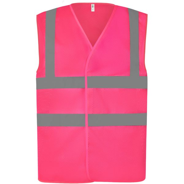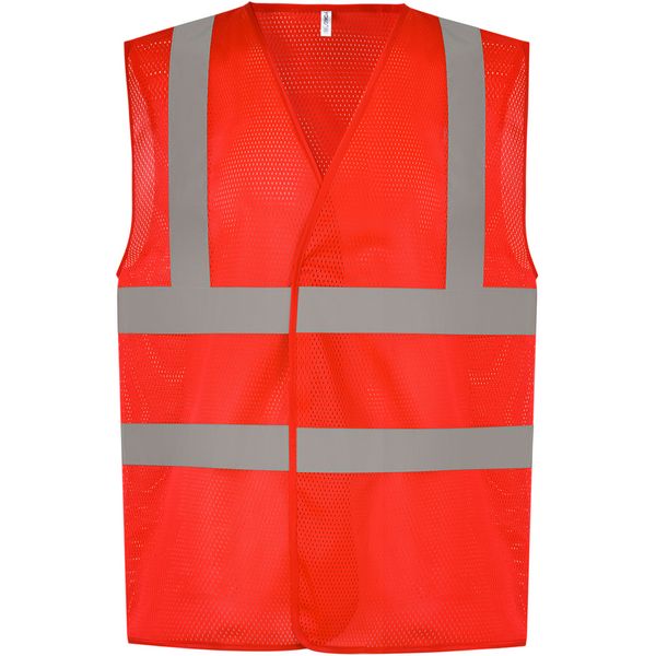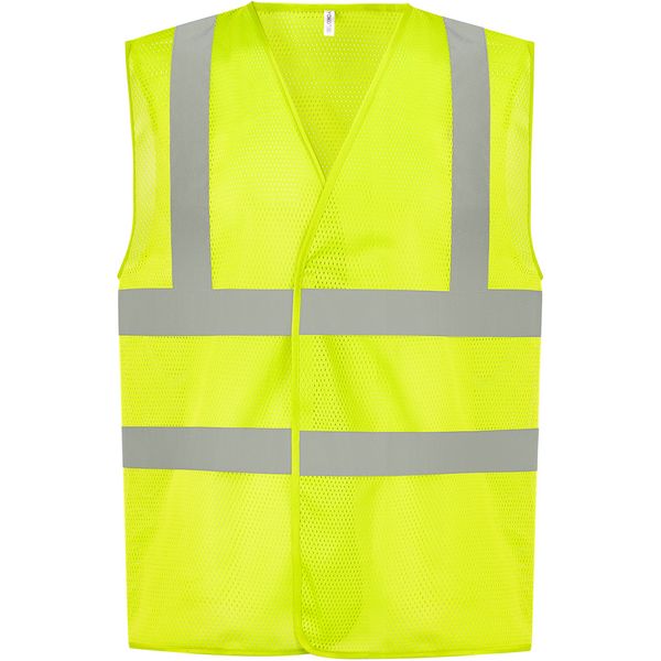 Lagani i prozračni materijal, čičak, certificiran prema EN ISO 20471 klasa 2, zajamčena reflektirajuća svojstva prema EN standardu za 25 ciklusa pranja, 1 reflektirajuća traka preko svakog ramena, dvije 5 cm široke reflektirajuće trake oko tijela, perivo na 40°Materijal: