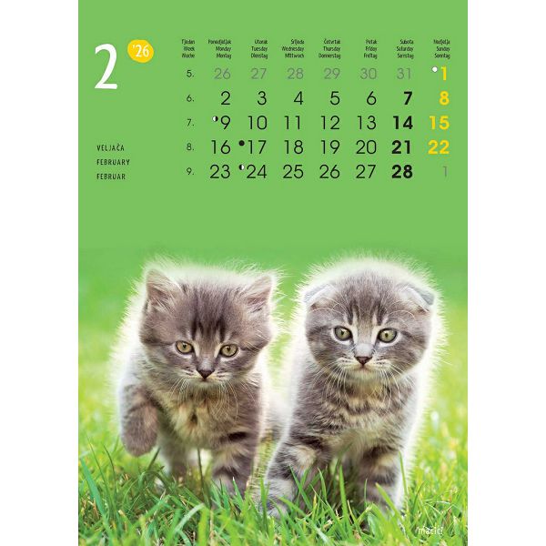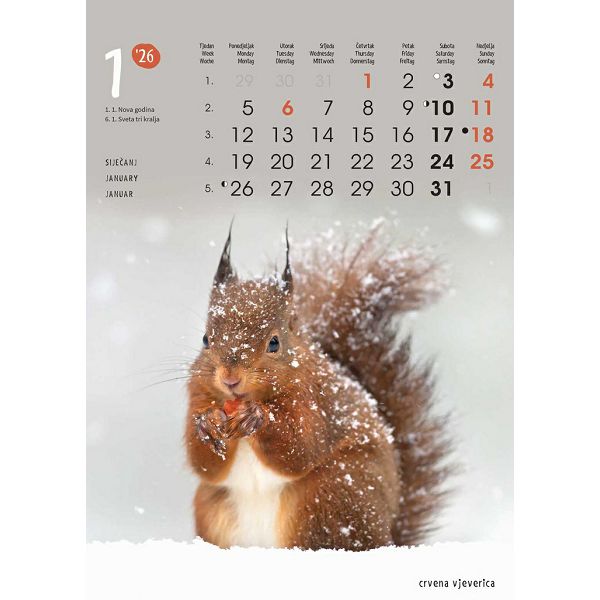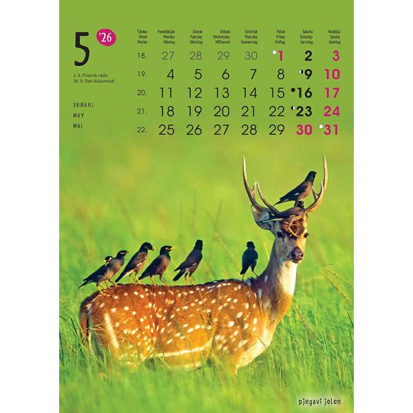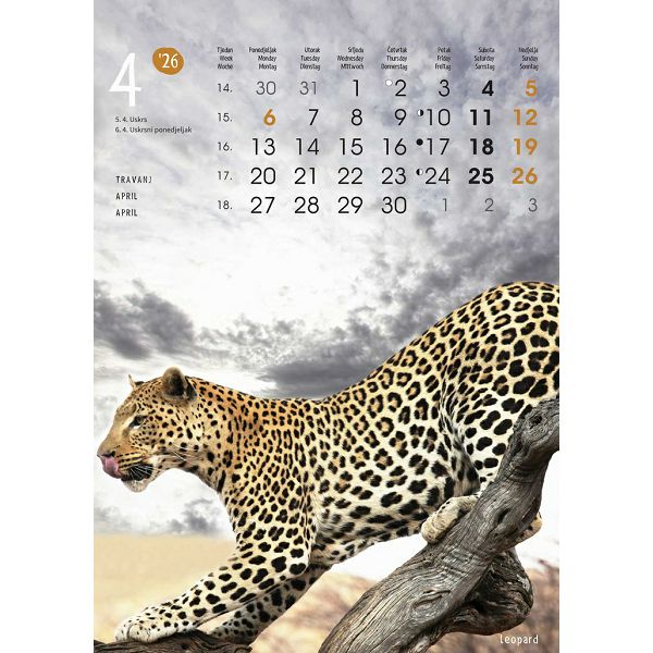 Zidni kalendar ŽIVOTINJE – 13 listova, 24x53,5 cm, color tisak
