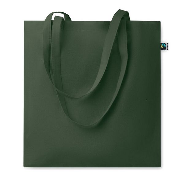 Vrećica za kupovinu izrađena od obojenog Fairtrade pamuka s dugim ručkama. 140 gr/m². Ovaj proizvod ima OEKO-TEX® STANDARD 100 certifikat.