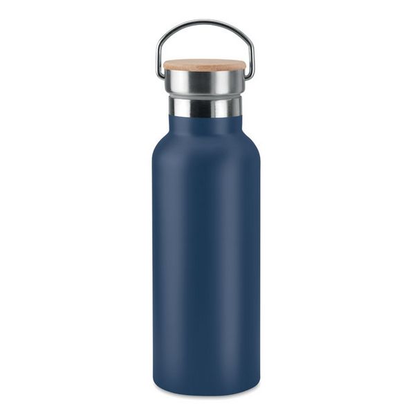 Dvoslojna termosica od nehrđajućeg čelika s poklopcem od bambusa i ručkom za nošenje. Kapacitet: 500 ml. Sublimacijski tisak dostupan je samo na bijelom artiklu. Ne propušta. Bambus je prirodni proizvod, moguće su male varijacije u boji i veličini po artiklu, što može utjecati na konačni rezultat dekoracije.