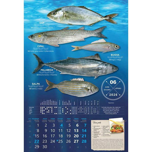 Zidni kalendar S ribarnice – 13 listova, 33×55 cm