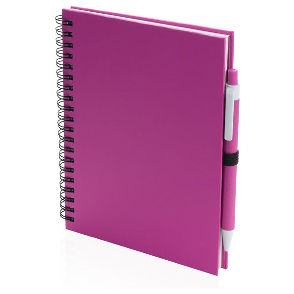 Carton covered spiral notebook with 70 blank sheets, and matching colour recycled paper ballpoint pen with blue refill, A5.Veličina proizvoda: