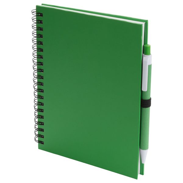 Carton covered spiral notebook with 70 blank sheets, and matching colour recycled paper ballpoint pen with blue refill, A5.Veličina proizvoda: